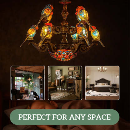 Each bird is made with hand-cut stained glass, glowing in vibrant hues that turn any room into a tropical dream.