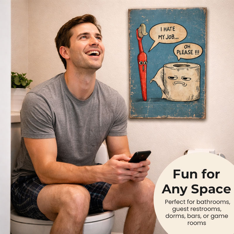 A painfully relatable joke that instantly adds humor to any bathroom.